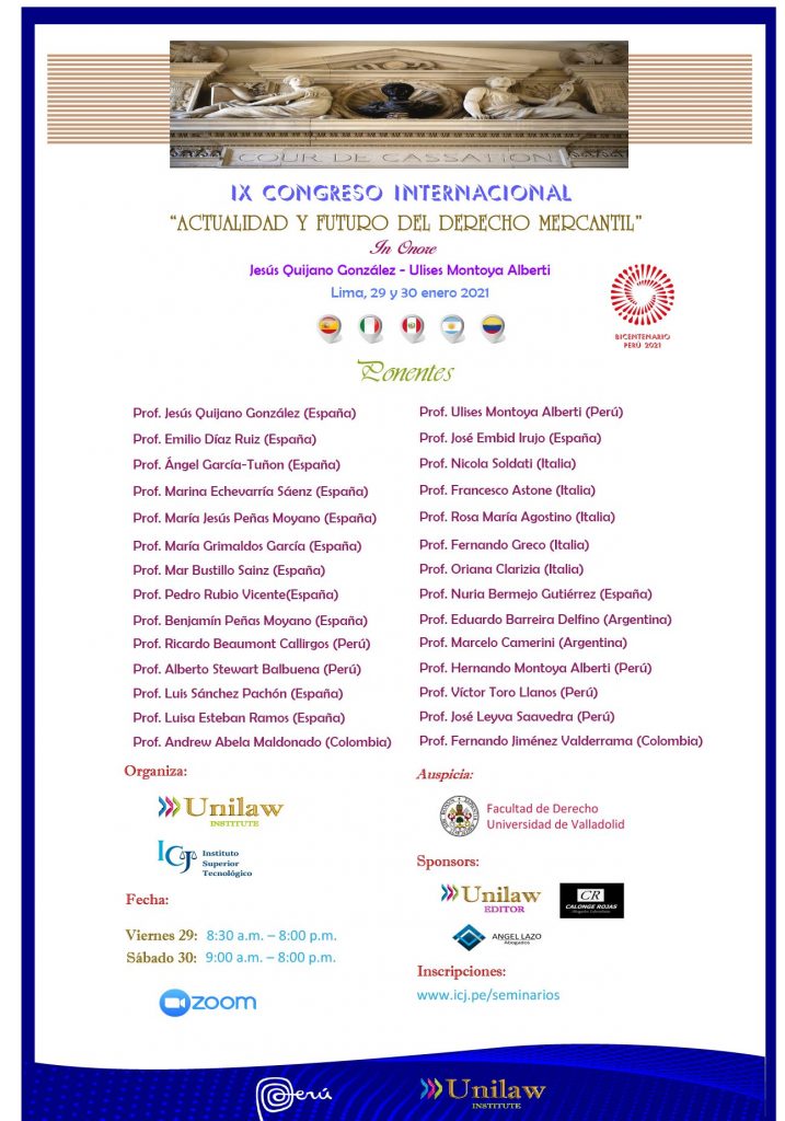 Si allega la locandina del “IX° Congreso Internacional: Actualidad y futuro del derecho mercantil”, che si terrà il 29 e 30 gennaio 2021.
