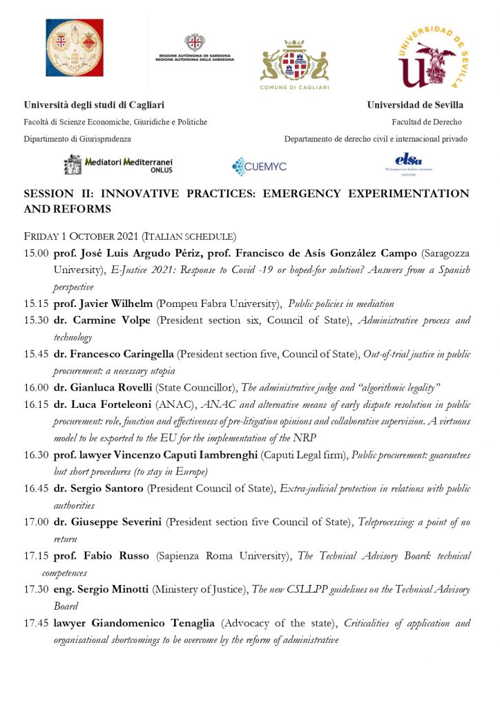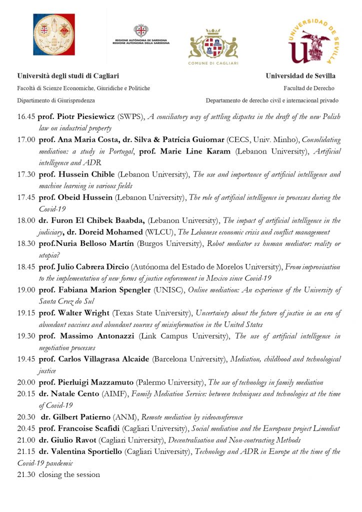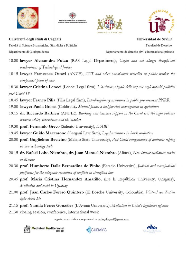 Si pubblica il programma integrale della Convegno internazionale sulle tutele dei diritti a distanza “Giustizia e Tecnologia post Covid-19”, che si terrà nei giorni 30 settembre – 1 ottobre p.v., nell’ambito della “Settimana internazionale di apertura dei corsi universitari”, organizzata dall’Università di Cagliari e dall’Università di Siviglia.