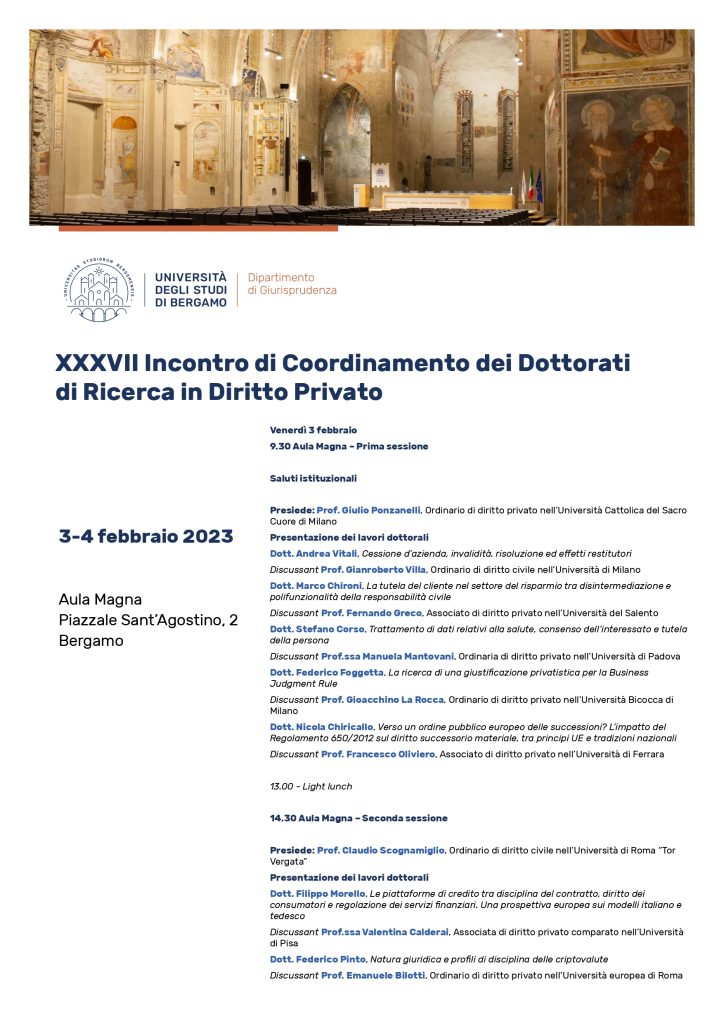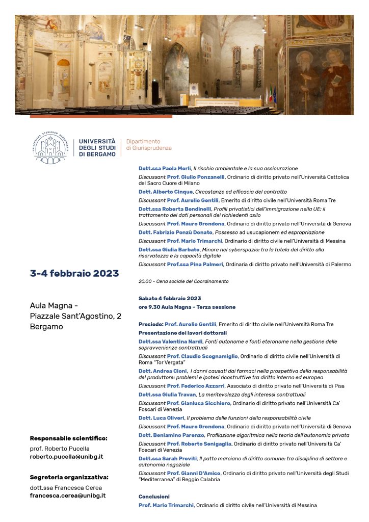Nella giornata di venerdì 3 febbraio, interverranno il Dott. Marco Chironi, componente del nostro Comitato Editoriale, per presentare la propria tesi su “La tutela del cliente nel settore del risparmio tra disintermediazione e polifunzionalità della responsabilità civile“, e il Prof. Fernando Greco, in qualità di discussant.