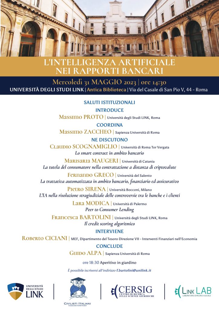 L’INTELLIGENZA ARTIFICIALE NEI RAPPORTI BANCARI – Università degli Studi Link, 31 maggio 2023